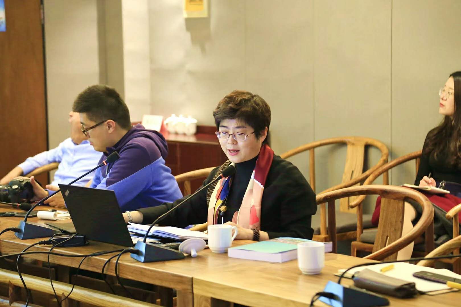 庞晶所长在汇报中分析了沂南旅游的发展现状和马泉周边的景区环境。她认为,近年来,沂南旅游业蓬勃发展,以竹泉为代表的第一代景区突出自然风光核带动和原生态吸引,以朱家林为代表的第二代景区彰显文创和休闲活动特色,在实际发展中都取得了令人瞩目的成绩。马泉休闲园要想在激烈的市场竞争中掌握先机,占领高地,必须坚持继承创新,着力打造以康养为主题的第三代景区。在这一目标定位的引领下,她从战略思路、场地解读、提升元素、特色活动、市场拓展、土地利用、服务配套等方面详细汇报了提升规划。